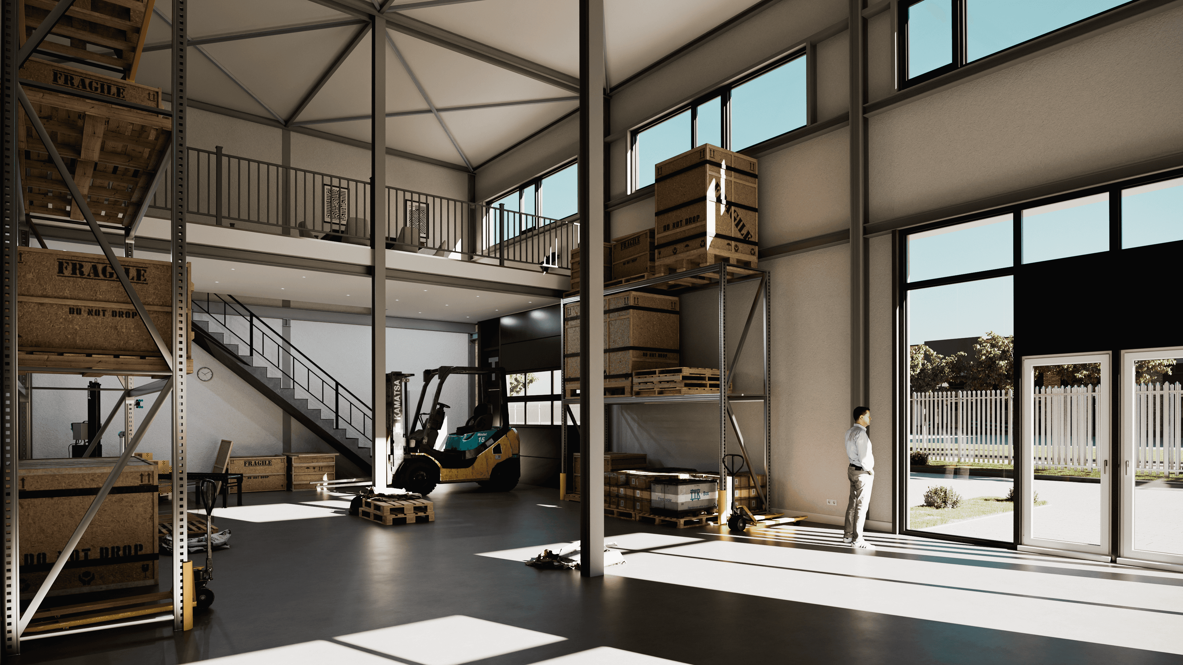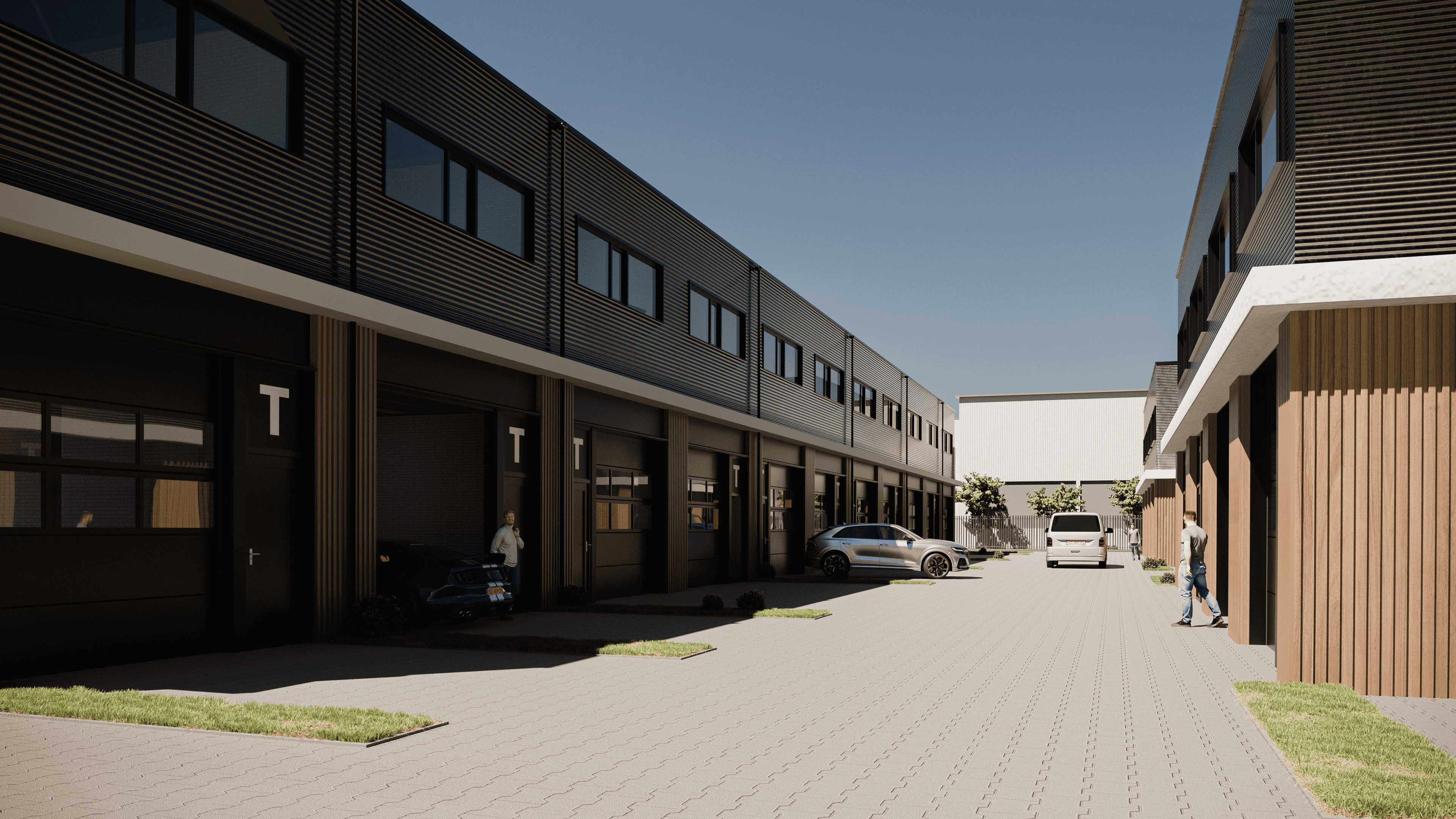 The concept focused on creating a flexible and visually appealing work environment that caters to a wide range of businesses. The combination of warm wooden textures, transparent glazing, and rugged metal cladding creates a harmonious blend of openness and strength. The wood softens the industrial aesthetic, introducing a natural and inviting character that enhances both user experience and curb appeal.